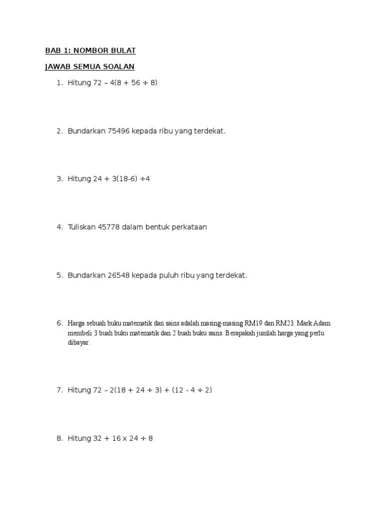 Latihan matematik nombor bulat tingkatan 1 sejarah latihan matematik nombor bulat tingkatan 1 mathematics latihan matematik tahun 3 nombor bulat latihan matematik nombor menaik dan menurun latihan matematik nombor bulat latihan matematik tingkatan 1 soal latihan matematika latihan matematik tadika latihan matematik tingkatan 4
